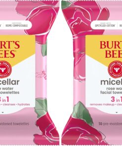 Cleanse, hydrate and remove makeup from your skin using Burt’s Bees Micellar Rose Water Facial Towelettes. Designed for all skin types, these 3-in-1 facial cleanser wipes gently remove makeup, cleanse and hydrate your face in one simple step. These facial cleansing wipes use micellar cleansing technology to help remove dirt, oil and other impurities while leaving skin feeling clean and balanced. Plus, there’s no need to rinse after using these makeup remover wipes—100% of users agree these skin care wipes do not leave a greasy or oily residue (1). Certified Home Compostable, these 99% natural origin gentle face cleanser towelettes are formulated without parabens, phthalates, petrolatum or SLS. These facial wipes are made with ingredients from nature and Leaping Bunny Certified (never tested on animals). Simply wipe your face with the makeup remover cloths to remove dirt, oil and makeup. Pair the facial cleansing towelettes with other Burt’s Bees facial skin care products. (1) Based on a 4-week clinical usage study of 42 women